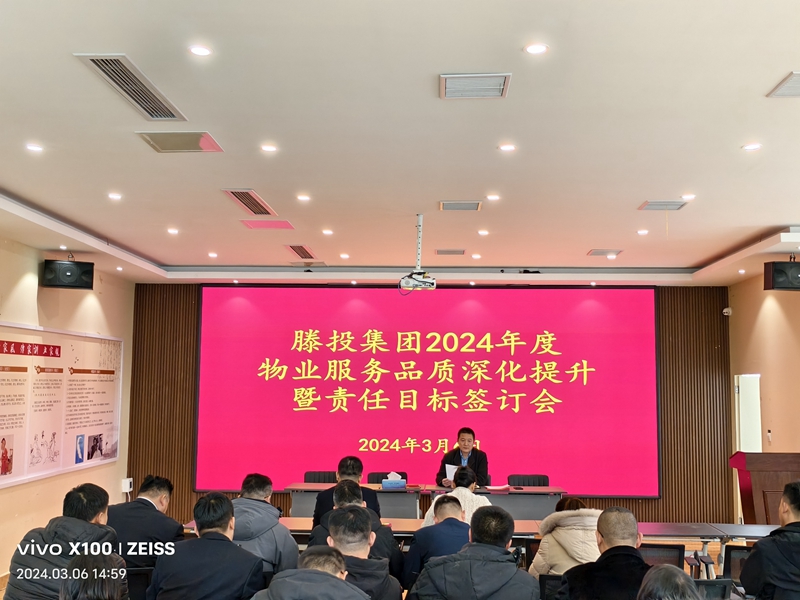 為認(rèn)真貫徹執(zhí)行集團公司關(guān)于啟動“物業(yè)品質(zhì)深化提升主題活動”部署要求,全面提升集團下屬各物業(yè)公司的服務(wù)品質(zhì)。3月6日,滕投集團萬德物業(yè)公司召開了“2024年度物業(yè)服務(wù)品質(zhì)深化提升年啟動會暨責(zé)任目標(biāo)簽訂會議”。會議旨在明確新一年的服務(wù)品質(zhì)提升目標(biāo),落實責(zé)任分工,確保各項措施得到有效執(zhí)行,為業(yè)主提供更加優(yōu)質(zhì)、高