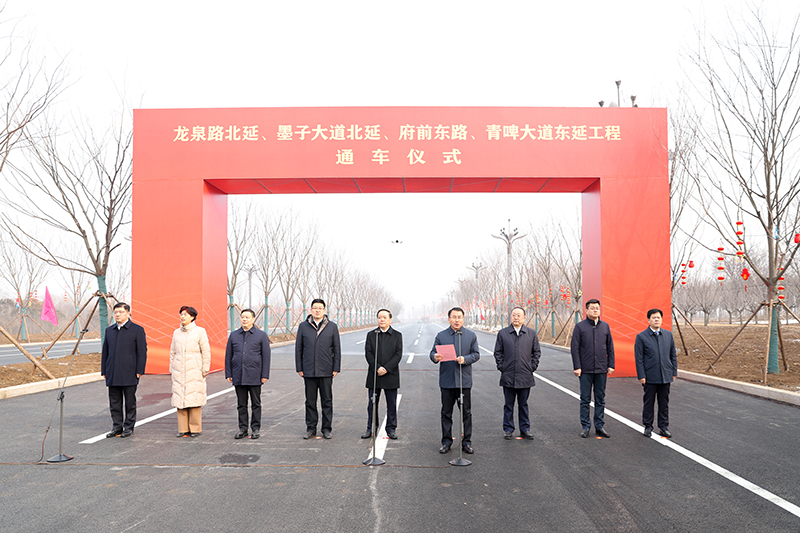 2月8日,備受全市人民關(guān)注的龍泉路北延、墨子大道北延、青啤大道東延、府前東路東拓工程四條城區(qū)重點道路通車儀式舉行。棗莊市委常委,滕州市委書記王廣部出席儀式并講話,市委副書記、市長周剛主持儀式,市領(lǐng)導朱晏辰、薛登峰、程亮、康鳳霞、顏丙磊、趙煒,滕投集團董事長方玉新出席儀式。 儀式上,市委常委