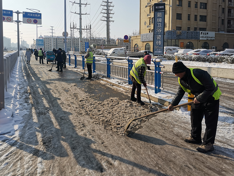 2月4日至5日期間,全市出現(xiàn)連續(xù)降雪、寒潮天氣,給群眾的日常出行帶來很大不便。興滕公司積極響應市委市政府號召,第一時間組織黨員干部職工到平行路進行掃雪除冰,以實際行動踐行“我為群眾辦實事”。 在現(xiàn)場,大家不畏嚴寒、齊心協(xié)力,攜帶鐵锨、雪鏟等工具迅速投入到破冰除雪活動中,同時安排多臺鏟車上路清
