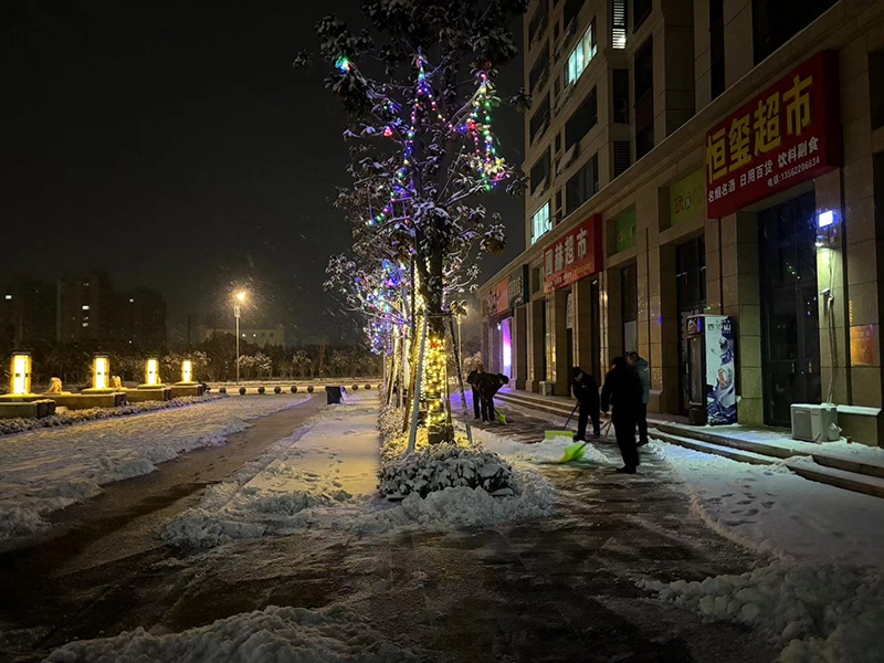 2月4日,滕州突降暴雪。滕投集團山東天行健公司新發(fā)物業(yè)為保障業(yè)主出行方便及安全,連夜組織員工對恒璽書苑、熙城甲第、天行健廣場、馮東馮西等負責項目進行路面積雪清除工作。新發(fā)物業(yè)工作人員通宵奮戰(zhàn)、輪流工作,在凌晨4點雪停之際,完成大部分地面的積雪清除,保障了業(yè)主的出行安全。 下一步,新發(fā)物業(yè)將繼