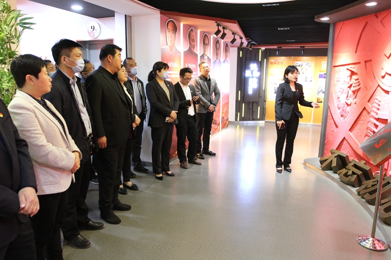 曹厚勝一行聽取了滕投黨群中心的整體介紹,重溫了中國(guó)共產(chǎn)黨的成立背景和輝煌歷程,學(xué)習(xí)了黨史、新中國(guó)史和改革開放史,領(lǐng)略了我市的紅色革命記憶與城市歷史變遷,感受了集團(tuán)黨建工作與生產(chǎn)經(jīng)營(yíng)的有機(jī)融合,詳細(xì)了解了滕投發(fā)展歷程、工程項(xiàng)目建設(shè)和特色亮點(diǎn)活動(dòng)開展情況。