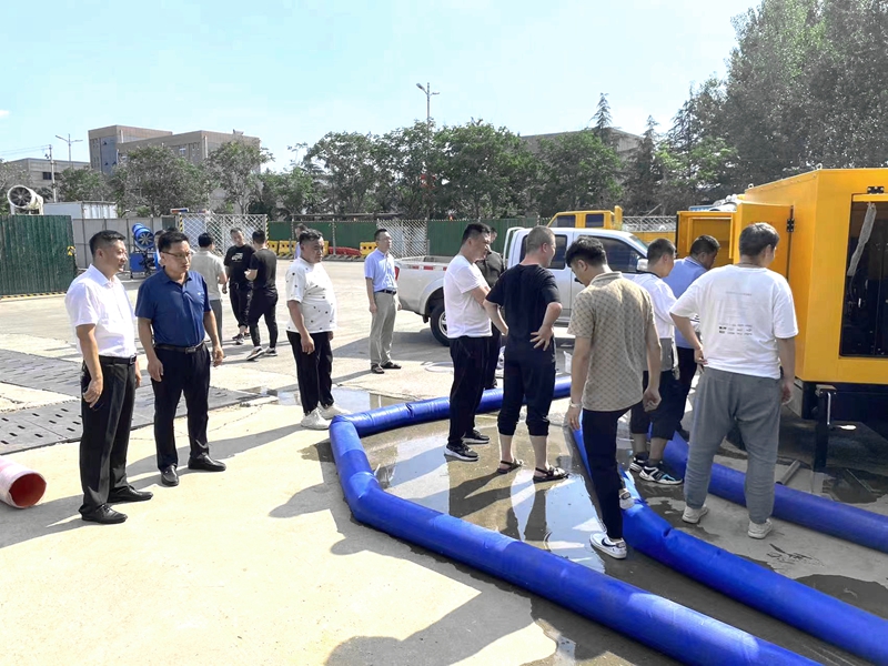 為應(yīng)對(duì)防汛抗旱及臺(tái)風(fēng)等惡劣天氣的影響,7月7日,集團(tuán)自吸式車載移動(dòng)泵站投入到項(xiàng)目使用。各項(xiàng)目部迅速組織相關(guān)技術(shù)人員學(xué)習(xí)泵站操作規(guī)范,并積極開(kāi)展了實(shí)操演練活動(dòng)。集團(tuán)副總經(jīng)理李正春參加活動(dòng)。