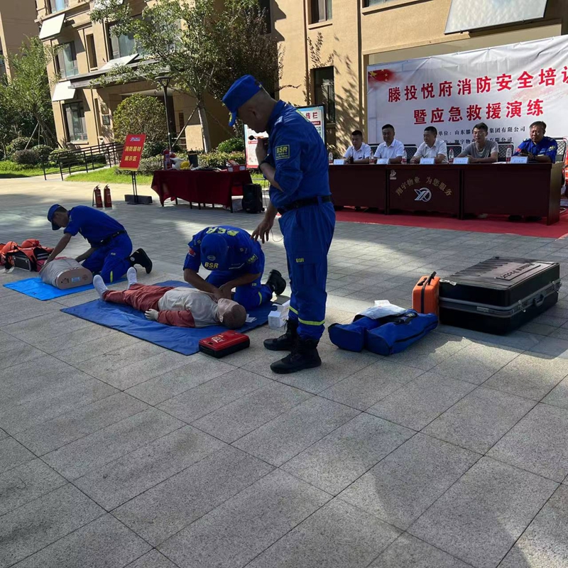 中秋國(guó)慶雙節(jié)將至,為進(jìn)一步提升節(jié)日期間消防應(yīng)急救援能力,確保滕投集團(tuán)各下轄小區(qū)度過(guò)一個(gè)安全穩(wěn)定、歡樂(lè)祥和的佳節(jié)。9月21日下午,集團(tuán)萬(wàn)德物業(yè)公司聯(lián)合滕投悅府物業(yè)服務(wù)中心開(kāi)展第三季度物業(yè)消防綜合演練活動(dòng)。活動(dòng)邀請(qǐng)了北辛街道文化路社區(qū)領(lǐng)導(dǎo)、滕州藍(lán)天救援隊(duì)救援人員、集團(tuán)下轄14個(gè)物管項(xiàng)目經(jīng)理和安全專(zhuān)員共計(jì)80余人參加活動(dòng)。