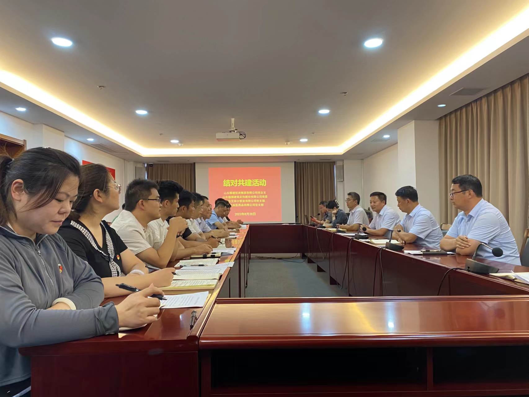 為全面提升開發(fā)區(qū)非公企業(yè)黨建工作水平,不斷增強(qiáng)基層黨組織工作活力,健全完善國企黨組織和非公企業(yè)黨組織結(jié)對共建工作,8月28日,開發(fā)區(qū)黨工委組織山東雄獅、艾拉森、艾菲爾等公司黨員到滕投集團(tuán)開展結(jié)對共建活動。開發(fā)區(qū)黨工委、滕發(fā)公司黨委、滕投集團(tuán)機(jī)關(guān)、興唐、商管黨支部的黨員同志參加活動,全員共同在集團(tuán)六樓會議室開展了《學(xué)習(xí)貫徹市委十二屆三次全體會議精神》主題黨日活動,隨后,現(xiàn)場參觀了滕投集團(tuán)黨群中心。