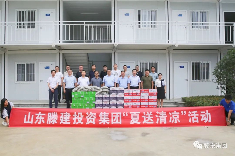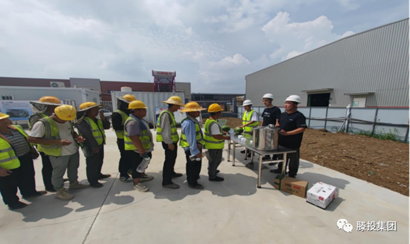 連日來,高溫炙烤著大地,但滾滾熱浪下仍有眾多建筑工作者堅守一線。在中材鋰膜三期項目施工現場,建設者們?yōu)樽汾s進度,不畏烈日驕陽,堅守崗位。為保障一線工人的安全和健康,滕投集團興唐公司領導班子成員和工會相關人員組成夏日送清涼慰問小組,于7月19號到達中材鋰膜三期項目現場,開展“情系工友,夏日送清涼”活動。慰