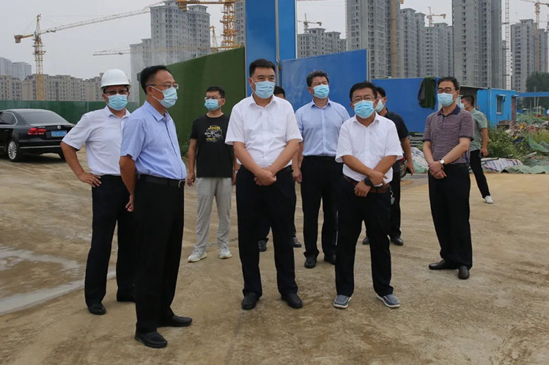 8月10日,市委常委、政法委書記劉慶東,市委政法委分管日常工作的副書記朱瑞國,市社會治理綜合服務(wù)中心主任謝凱一行來小崗區(qū)域改造項目督導(dǎo)疫情防控和生態(tài)環(huán)境保護工作。北辛街道黨工委書記馬金安,集團董事長方玉新參加活動。劉慶東詳細(xì)察看了項目疫情防護措施及建筑工地?fù)P塵治理等工作情況,并對相關(guān)工作給予充分肯定和高